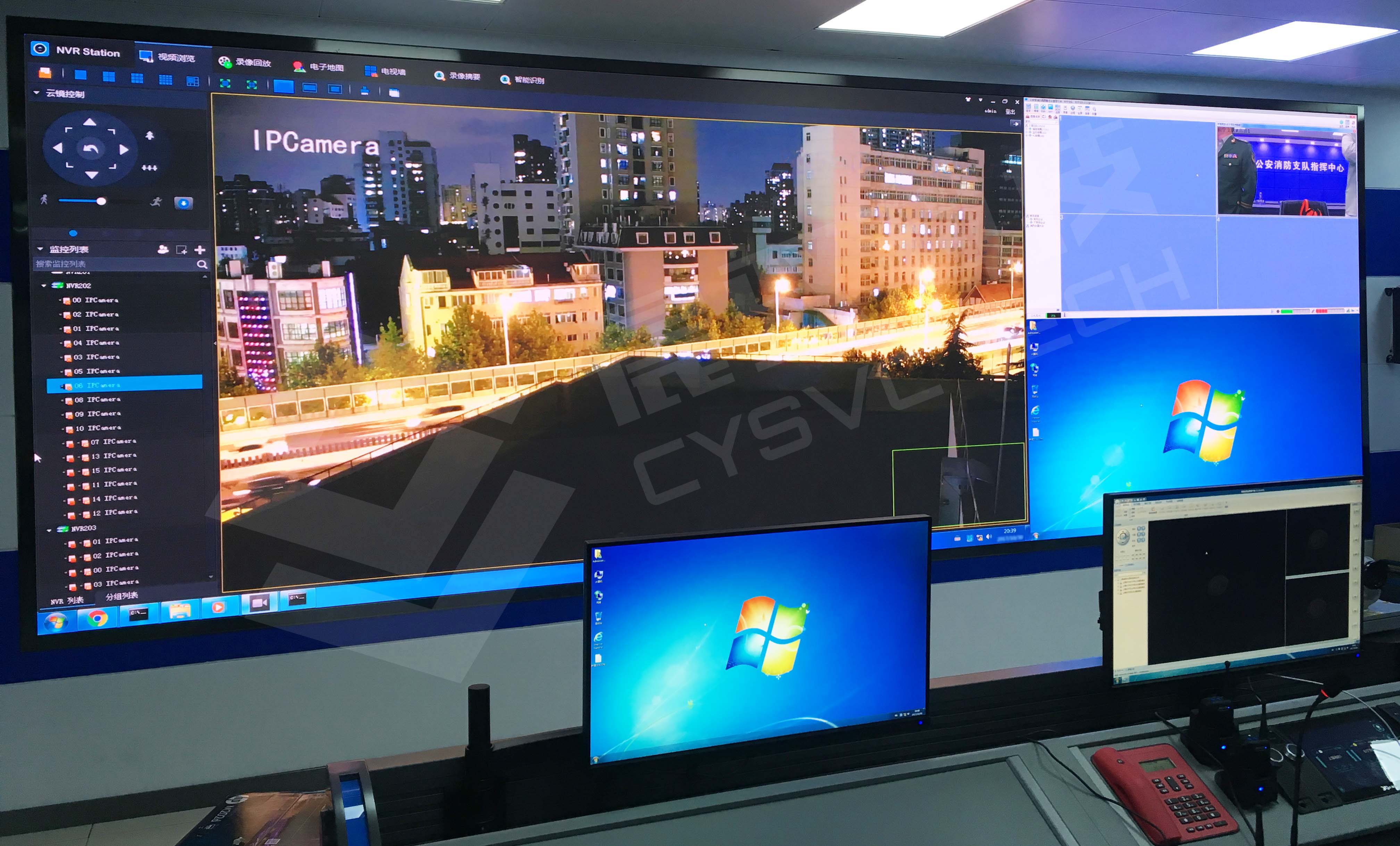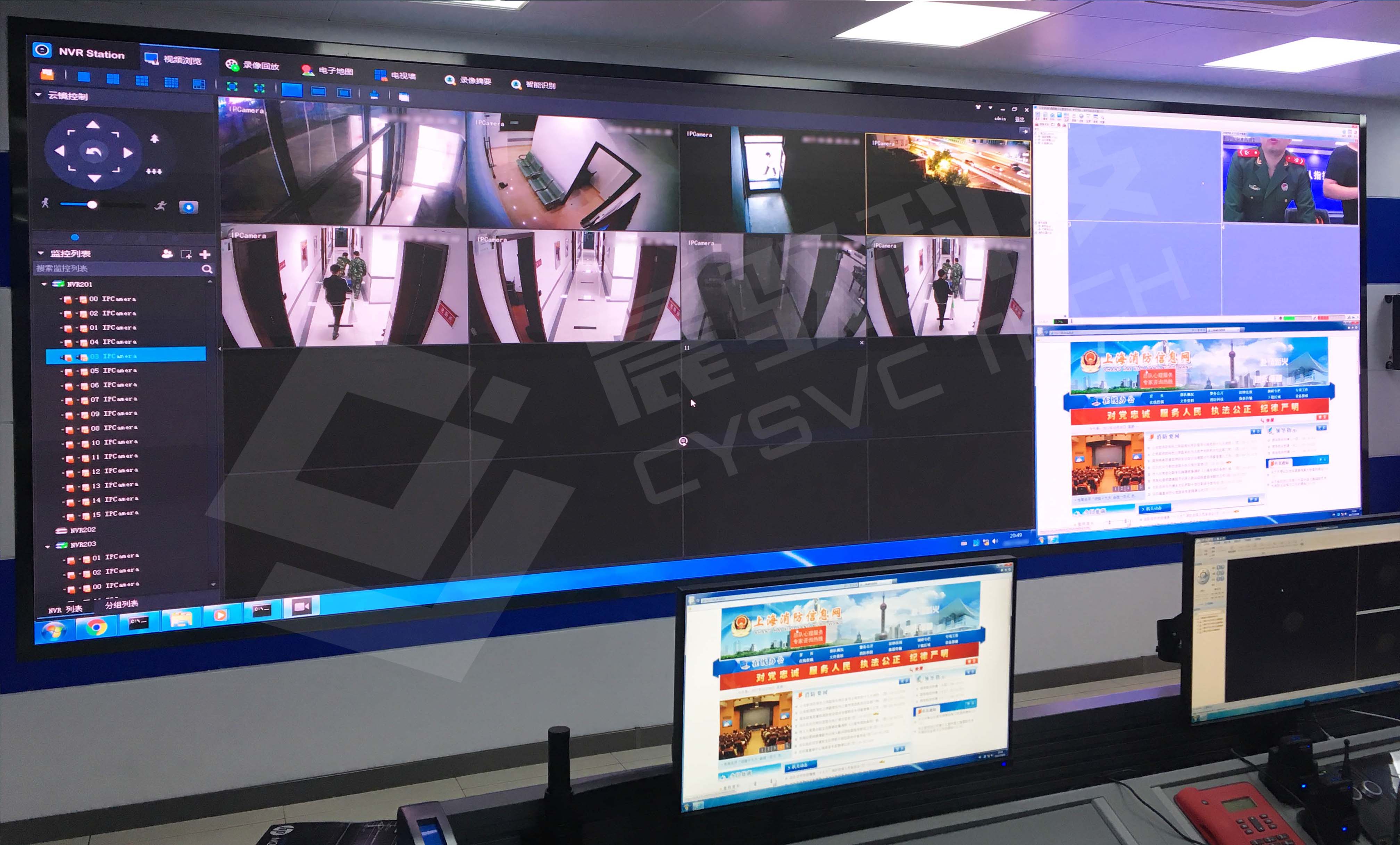 上海某区消防支队指挥中心,采用晨驭科技自主研发推出的MCNet分布式处理器,搭建范围覆盖全区的消防远程监控平台。通过指挥中心小间距LED拼接大屏,消防管理员一方面能够以单屏64窗,纵览系统内所有监控信号,或者将信号自由组合为节目单与预设场景,在大屏上进行轮巡播放;另一方面也能以超高清全帧率无损画质,查看系统内任意监控信号,并且自由放大、缩小、叠加、漫游画面窗口,做到对火情可疑点的精细观察与判断,高效落实对辖区范围内政府单位、医疗设施、居民住宅、商圈等人员密集区域的消防安全管理。