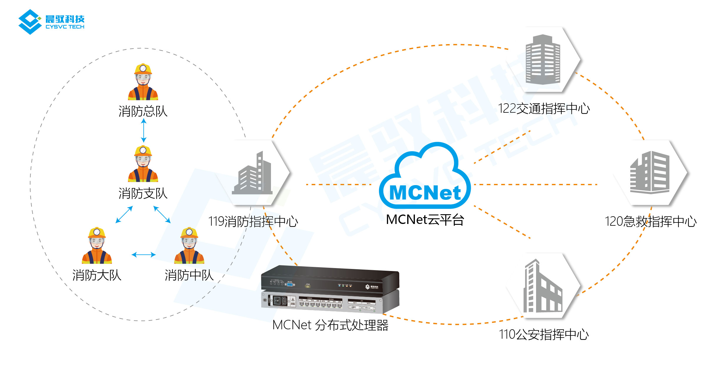根据消防部队实战需求,晨驭科技为上海某区消防支队构建基于纯分布式的消防应急指挥中心显控系统解决方案,以卓越的音视频图像处理技术,高稳定的产品性能,最大程度整合全市区应急消防资源,实现“一张图”作战指挥调度。