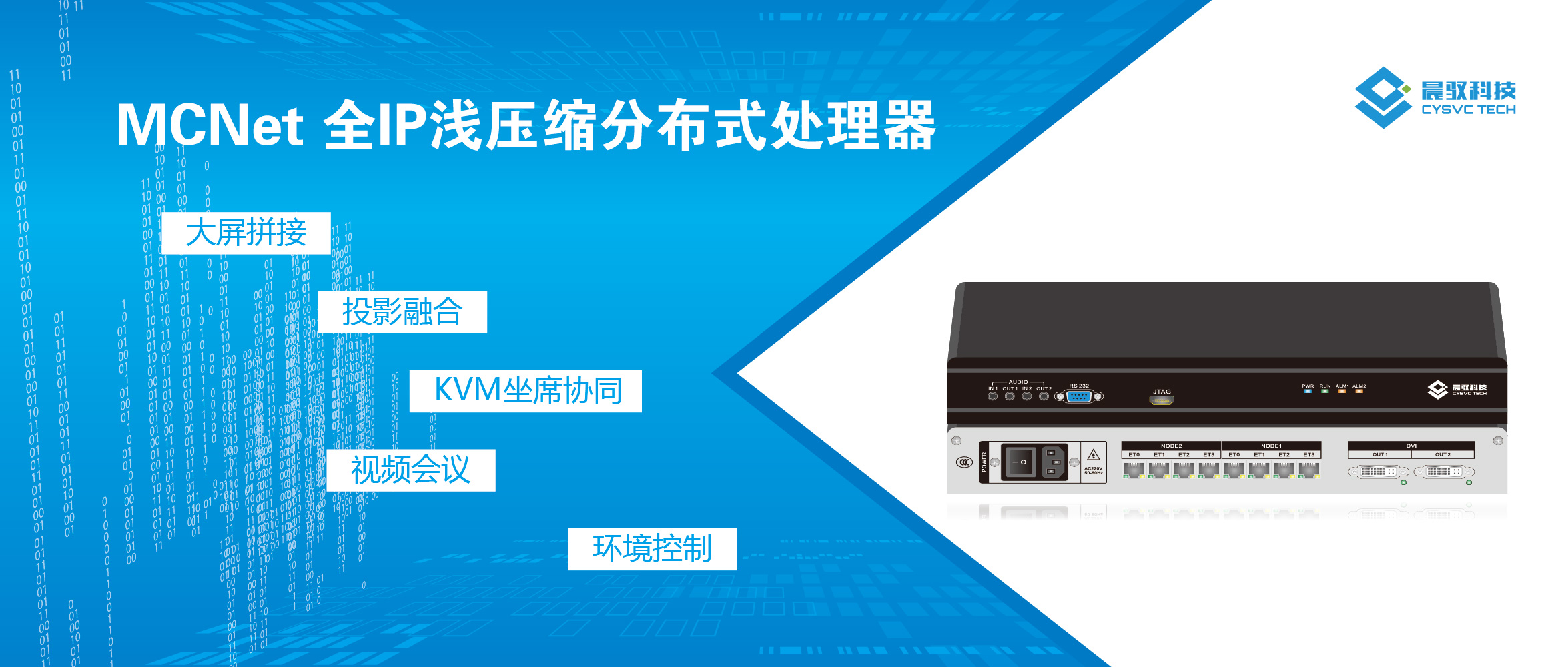 晨驭科技作为国内最先提出分布式系统概念的高新技术企业,自创立之初便专注于对分布式拼接融合产品的研发与生产,拥有十多项国家级分布式技术专利。作为分布式处理器领创者,晨驭自主研发生产的MCNet全IP浅压缩分布式处理器,更是荣膺上海市高新技术成果转化项目“百佳”称号,广泛运用于航空航天、警务公安、智慧城市、公共交通、银行金融、广电媒体等行业领域,赢得了海内外客户的一致好评。