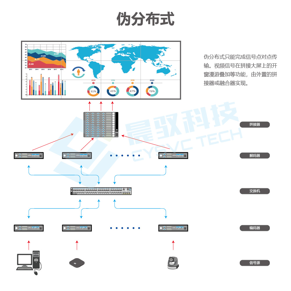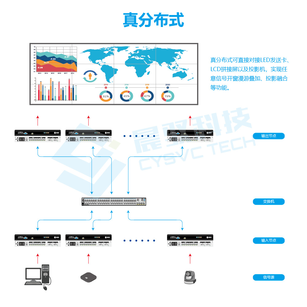 随着现代数字化信息技术的不断发展,图像显示控制系统在指挥中心、智慧城市、医疗示教、安防监控等领域发挥着越来越重要的作用,并逐渐转变为指挥与管控环节不可或缺的组成部分。其中,分布式技术作为图像拼接数字化进步的革新产物,大大提升了拼接墙上信息图像的显示效果,受到专业视听领域受到客户的热切关注。