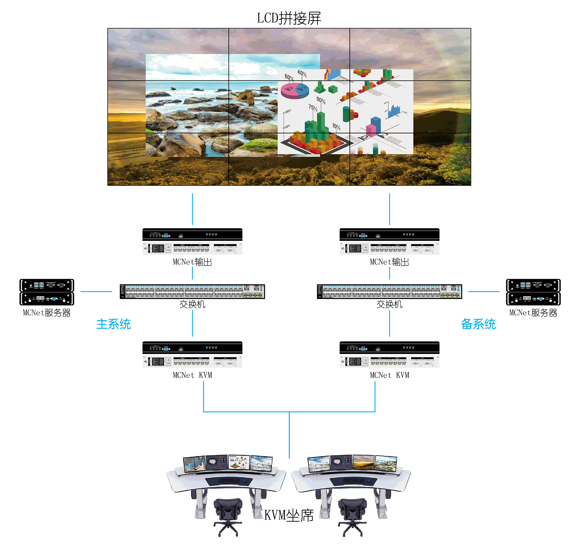 MCNet分布式可视化坐席协作管理系统,是晨驭科技自主研发生产的新一代数字KVM坐席协作管理系统,基于全IP数字化信息传送与音视频一体化处理技术,帮助坐席人员以一套键盘鼠标,方便控制远端主机,优化操作体验,提高工作效率,满足现代化应急管理指挥需求。